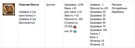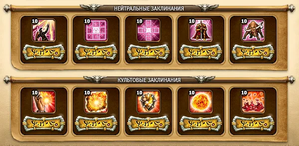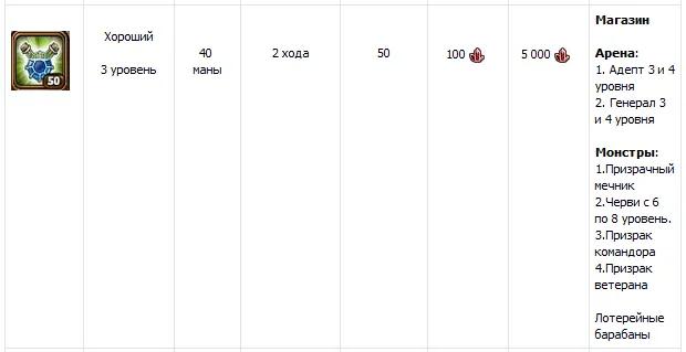 Хранители культа Разрушителя владеют – заклинаниями Огненной шар это заклинание наносит урон. Взрыв – развергая небеса Разрушитель наносит противнику урон. Огненной щит – стена огня увеличивает урон и броню. Огонь души наносит урон и сжигает манну сопернику. Бурлящая кровь – увеличивает урон и ярость на 10%. И так с чего же можно начать, с первого уровня, нам дается образ адепта, остров с имеющимися на нем Древом, магазином, школой магии, пещерой и ареной, все они даются первого уровня. Прежде чем начинать играть, выходить на арену, нам нужно набрать силу острова, то есть улучшить постройки. Для игры на арене, нужно иметь достойные культовые заклинания, для этого нам необходимо построить школу магии, но прежде чем начать строительство, так же нужно улучшить Древо. Уровень всех построек не может превышать, уровень самого Древа. И так мы начали постройку Древа, после того как мы улучшили его до определенного уровня, и соответственно имеем право улучшить школу магии именно то что мы и хотели добиться, таким образом мы поступаем со всеми постройками на острове. На каждую постройку, до ее завершения необходимо потратить время. Но так, же и есть возможность не заставлять себя так долго ждать, мы можем ускорить постройку или попросить своего друга в оказании помощи. Достигнув определенного результата, то есть построить Древо и школу магии 2 уровня, мы можем продолжить постройку, ставим на улучшение культовые и нейтральные заклинания, и тем временем улучшаем все постройки, но прошу заметить за исключением – Арены, так как чем выше ее уровень, тем больше опыта Вы получаете при победе. А на не высоких уровнях, этого нужно избегать, для того чтобы успевать получать медали, образы, тем самым повышать свои характеристики. Вернемся к постройкам, идем к цели именно так как описано выше, и достигаем уровня всех построек до 10. 10 уровень – это максимальный уровень возможный в игре Небеса. Теперь, когда мы обладаем поддержкой с культовыми и нейтральными заклинаниями. Мы имеем силу сражаться на арене. На начале нашей игры, нам нужно получить звание Генерал, этот образ дает жизнь, и необходимый нам урон. На начальных уровнях, необходимо одевать предметы так же влияющие и поднимающие урон и здоровье, а именно трезубец молний – это оружие, перстень торговца – это кольцо, ожерелье торговца - амулет и сумка торговца – это реликвия, на доспех подойдет – Мантия поэта. Вот так мы уже одеты, теперь нам нужно вооружиться, перейдем к эликсирам. Эликсиры необходимые на начальных уровнях описаны ниже в таблице, это именно те эликсиры которые помогут Вам одолеть противника, поднять здоровье, урон и так далее. В конце описания моего поста, необходимо учитывать одно, то что человек когда начинает игру, ему нужно понять лишь правила, если он поймет правила, то обязательно правильно будет играть, и соответственно добьется хороших результатов. Надеюсь этот пост поможет каждому и он поступить на первых стадиях игры именно так!!!