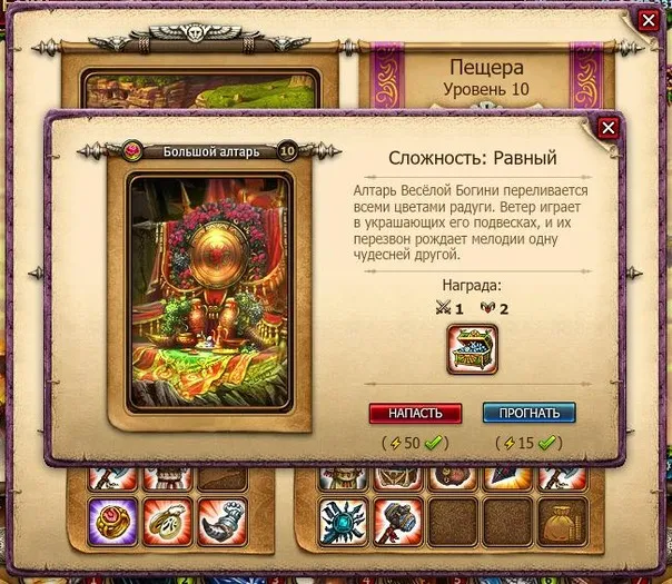 Чтобы разграбить алтарь надо учитывать: урон персонажа + урон с культовых заклинаний (хотя бы 7ой уровень) + бафф на урон с культовых заклинаний + клановый бафф на урон, если на оффе + эликсиры + ярость.