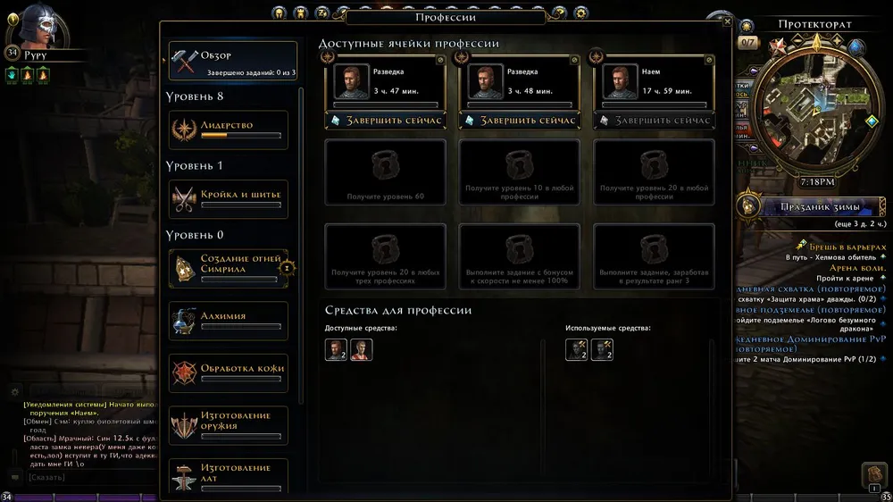 Добываем лучших мастеров и ресурсы и качаем навык.