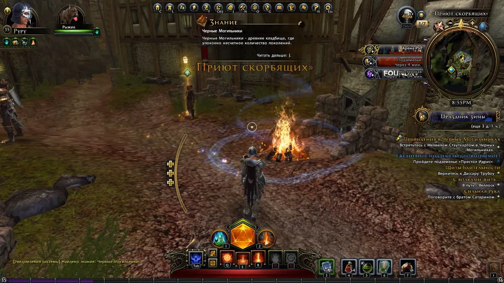 Костры и молитвы. Возле костров мы быстро восстанавливаем силы. Аналогичный эффект можно получить от переносного алтаря. У костра мы можем и молится раз в час. Молитва дает небольшой баф, опыт, кристаллы и монетки. Только за первую молитву в день вы получите 2 вида монет. Первая несгораемая, и за нее можно получить крутых петов и плюшки, а вторая сгораемая. Пропустили день без молитвы - все монеты этого типа сгорели. Максимум 7. Меняется на фан плюшки или ингридиенты для крафта. (Обратите внимание на двух лукарей в пати :) так же будет и в данже)