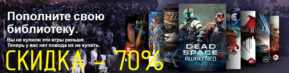 Акция от Origin дает вам возможность сэкономить до 70% с каждой купленной игры, в том числе получить некоторые игры абсолютно бесплатно! Поторопитесь, акция со скидками длится до 16-го Июня 2014 года. Пополните свою коллекцию новыми играми, которых у вас нет!