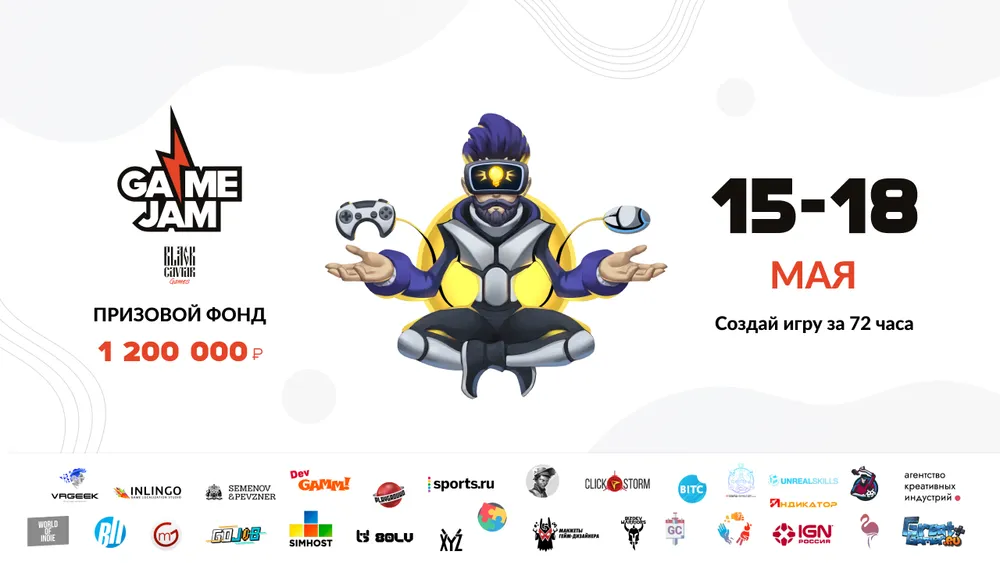 На прошлой неделе уже был анонс, что в первой половине мая должен состояться Game Jam с призовым фондом в 1 200 000 рублей. Командам и независимым участникам будет отведено 72 часа, чтобы принять участие в мероприятии и сразиться за главный приз в 100 000 рублей! Все остальные номинации получат по 30 000 рублей, но одна игра может претендовать сразу на несколько, как и получить ценные гранты от партнёров и спонсоров Джема.