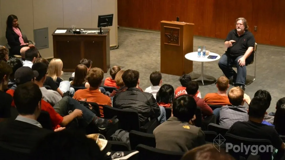 А Гэйб-то коммунист. Или анархист. Или капиталист будущего, кто разберет. Он сказал студентам, что у Valve не должно быть монополии и что «кто угодно должен иметь возможность публиковать что угодно в Steam». См. с 44:00.