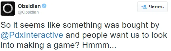 Так как одну из игр Obsidian уже издавала Paradox, разработчик задумался, а не стоит ли взяться за игру по купленной лицензии. Хотя по одному твиту судить, конечно, не стоит о намерениях компании.