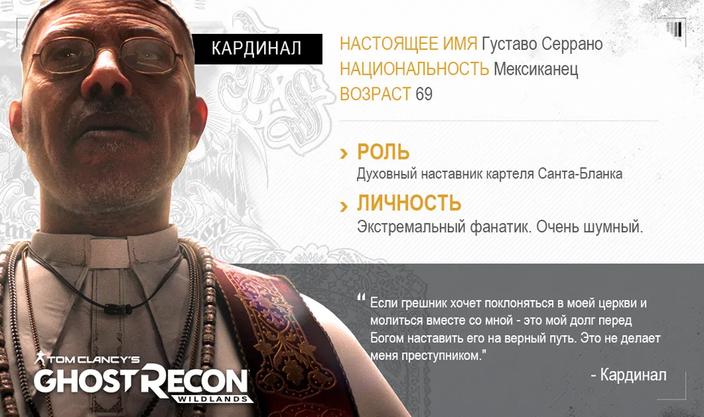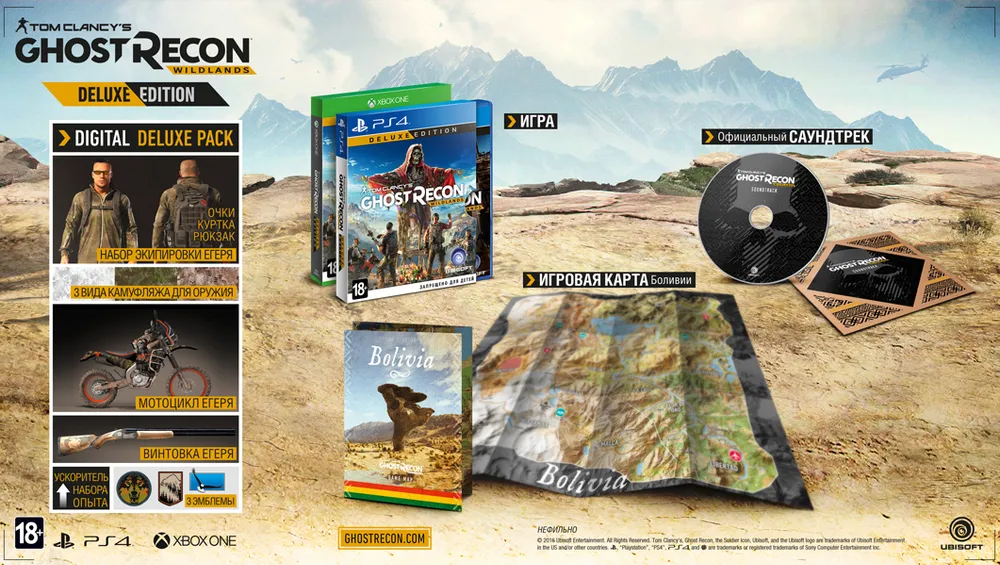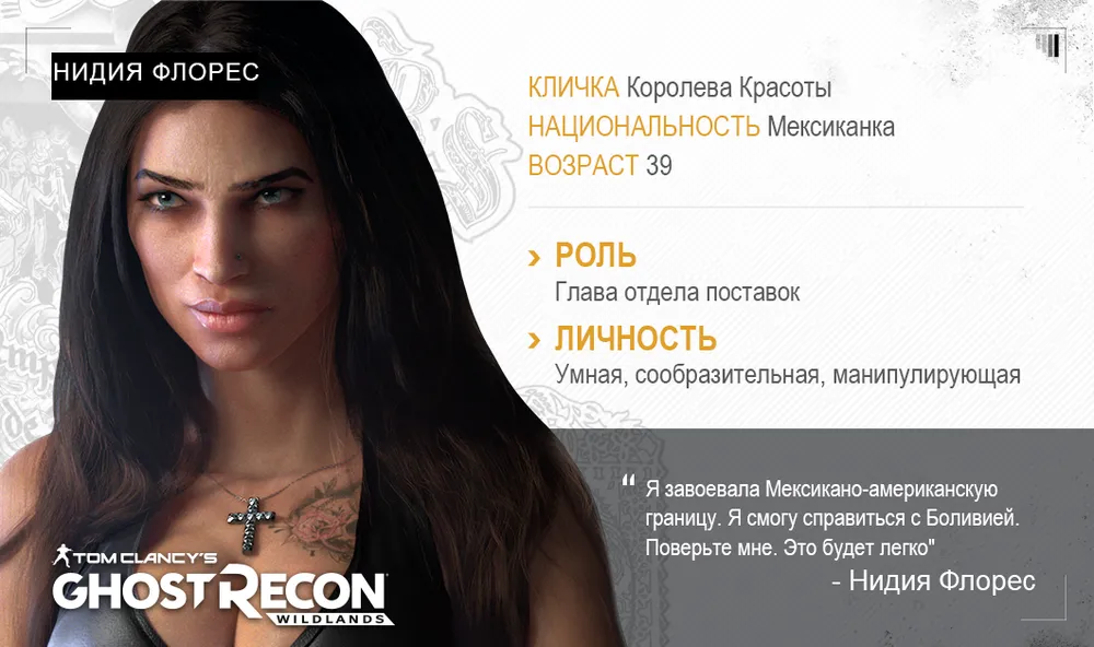 Значительное внимание на конференции Ubisoft на прошедшей E3 2016 было уделено игре Tom Clancy’s Ghost Recon Wildlands. Действие новой игры франшизы происходит на обширной территории в Боливии, контролируемой наркокартелем Санта-Бланка. У картеля глубокие связи с коррумпированными чиновниками. И отряду предстоит непростая работа по нейтрализации наркокартеля.