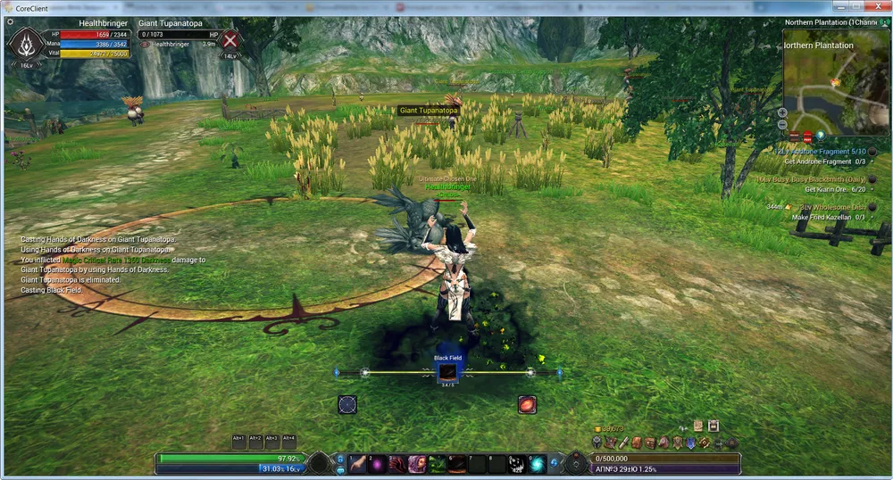 Из приятных особенностей данной игры следует отметить панель с 2 полосами: заполнения общего опыта (Exp) и совершенствования умений (Potential points). При убийстве мобов накапливаются Potential points, которые можно сконвертировать в Skill points и выучить/усовершенствовать умения.
