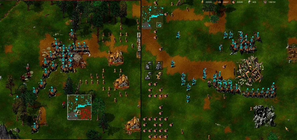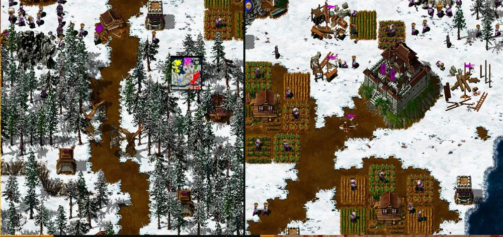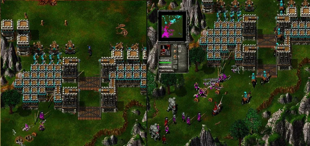 Вот и крупное сражение! Немедленно устанавливаем самую низкую скорость игры и отдаём приказ: всем крестьянам, находящимся в осаждённом городе, бежать к нашему войску. Спасённые тотчас же строят лесопилку и, не теряя времени, начинают валить лес. Ну и что, что битва ещё не закончена? Когда закончится, будет поздно!