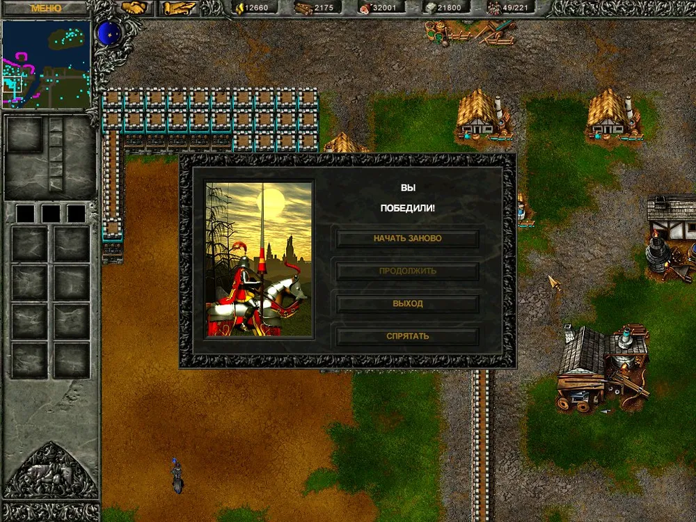 Уничтожаем последнюю вражескую постройку, приходит сообщение о победе, но… Перейти в следующую миссию нельзя! Начать заново – пожалуйста, а перейти – нет. То ли это баг, то ли нас усиленно подталкивают к «правильному» прохождению миссии. А как же уровни опыта, полученные героями? Ну уж нет, применим код!