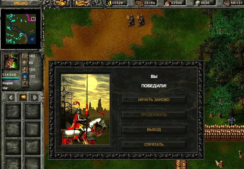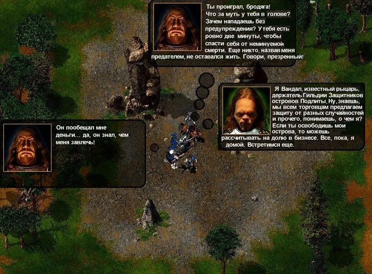 Горацио свободен, но из повидавшего виды крестоносца превратился в зелёного новичка нулевого уровня! Одно из трёх: либо Бирюлькин обладает способностью понижать уровни наших войск (кошмар!), либо Горацио растерял сноровку от долгого сидения в седле, либо это – в наказание за бездарно поведённую оборону города. Решайте, стоит ли проходить эту миссию, или лучше не допустить пленения Горацио.