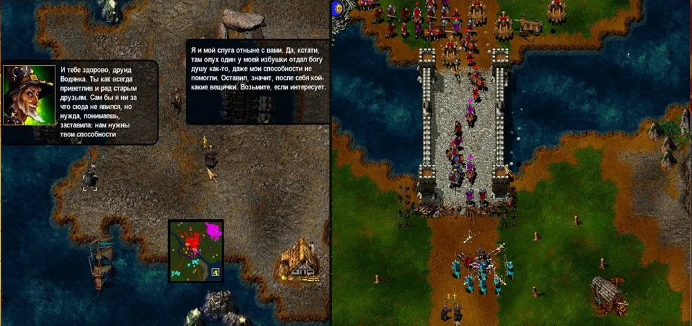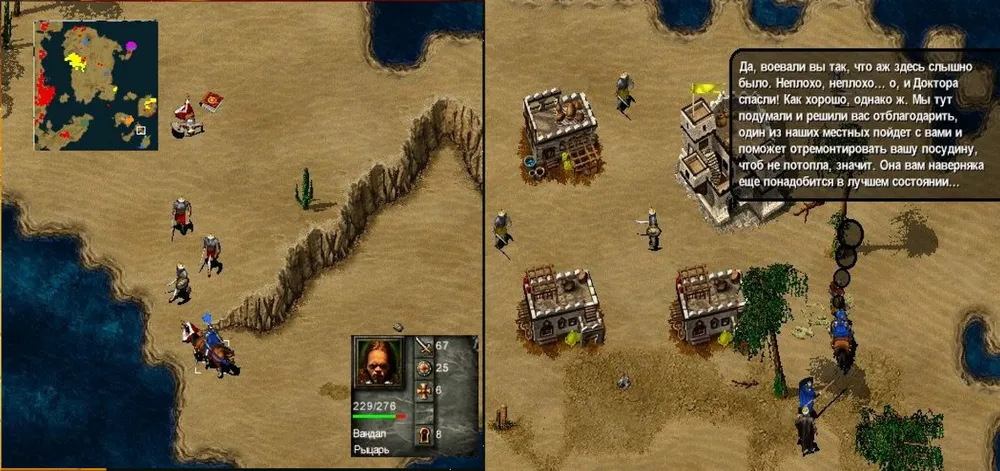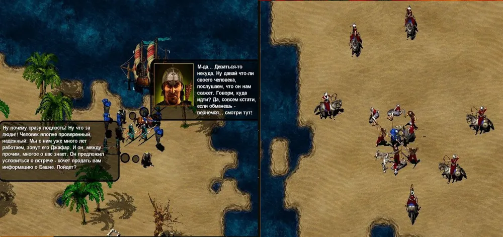 Как сказал Спартак: «Действительно, подлиты какие-то…» Войск мало, крестьяне – нейтральны, и перейдут под начало того, кто к ним первым подберётся. На соседнем острове есть башни и строения, но нет войск. Между тем враг высаживается на оба острова и устремляется вперёд. Нанимаем в таверне немного войск (лучше – кавалерии) и оправляемся навстречу.