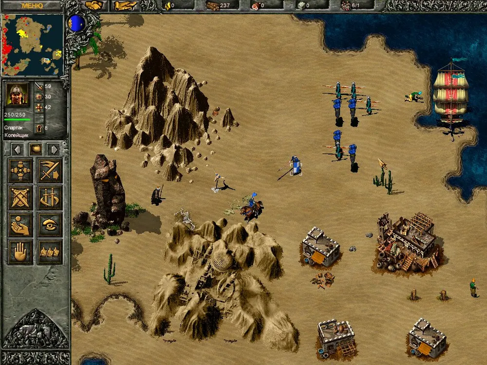 Как, и всё? А база врага, а союзники на острове? Неинтересно! Хорошо, не отдаём книгу Жирову, а кладём её на землю неподалёку от Спартака или Горацио. Любой из героев забирает книгу, грузим всех, включая шпиона, на корабль и плывём к острову.