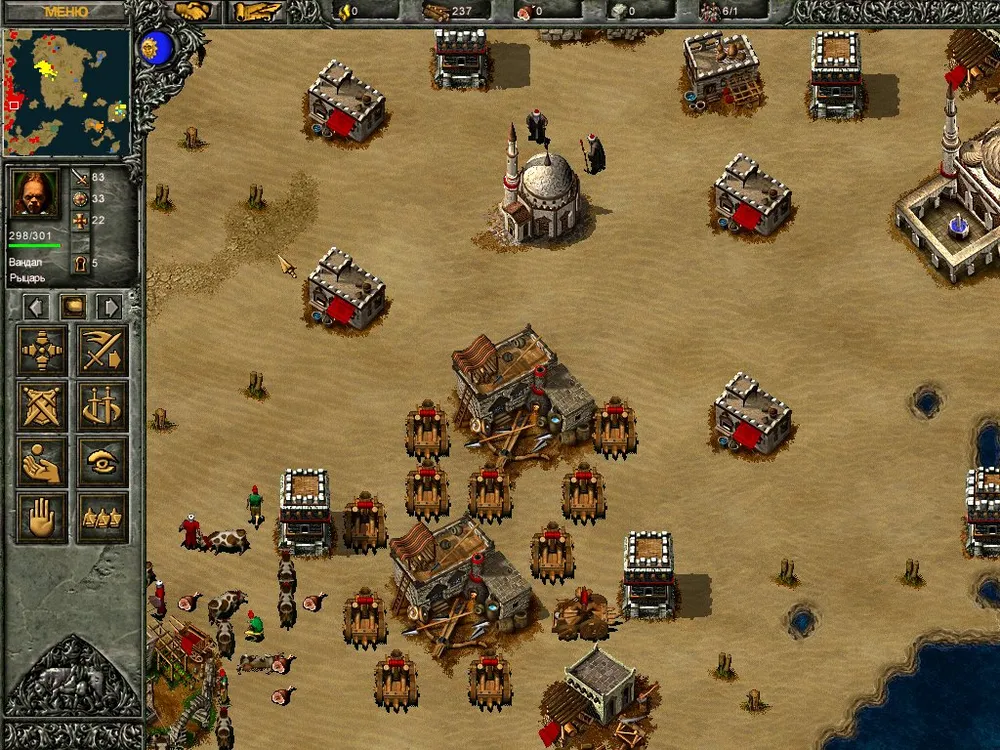 Выстраиваем европейскую магическую башню, и Жиров получает возможность призывать големов и летучих мышей. Возводим арабскую магическую башню, лабораторию – и вот уже наш маг получает 500 маны, вызывая сразу три десятка злобных мышек, а крестоносец – 600 единиц жизни. Остальное – по тому же сценарию. Правда, воевать будет сложнее: скорее всего, враг успеет развиться и начнёт атаковать тяжёлыми войсками. Вам решать, какой способ лучше.
