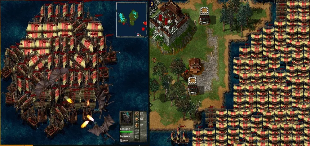 Но вот показывается вражеский флагман, в сопровождении громадного флота и драконов. Сумеете отбить и эту воздушную атаку – считайте, что вам повезло: флот врага превышает допустимую численность населения, и драконы больше не прилетят. Что, однако, не помешает появляться новым и новым единицам шхун, фрегатов и галеонов до тех пор, пока их количество не достигнет чудовищных величин. Зато десанты на время прекратятся.