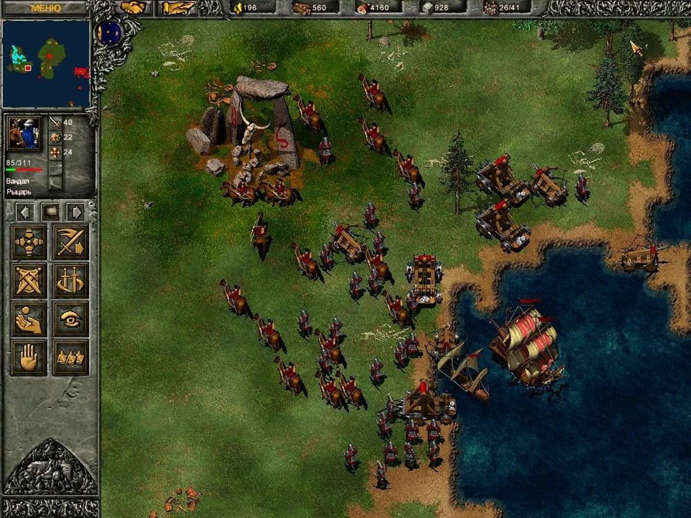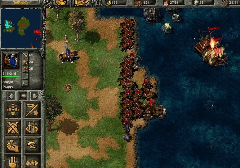 То же самое можно применить и в этой миссии – неподалёку от замка есть маленькое озеро. Строим пристань, спускаем на воду пяток бригов, усиливаем их артиллерию – непреодолимый заслон готов. Тем более, что в «Огнём и Мечом» пехотинцы не могут нападать на корабли, как это было в «Эпохе Империй».