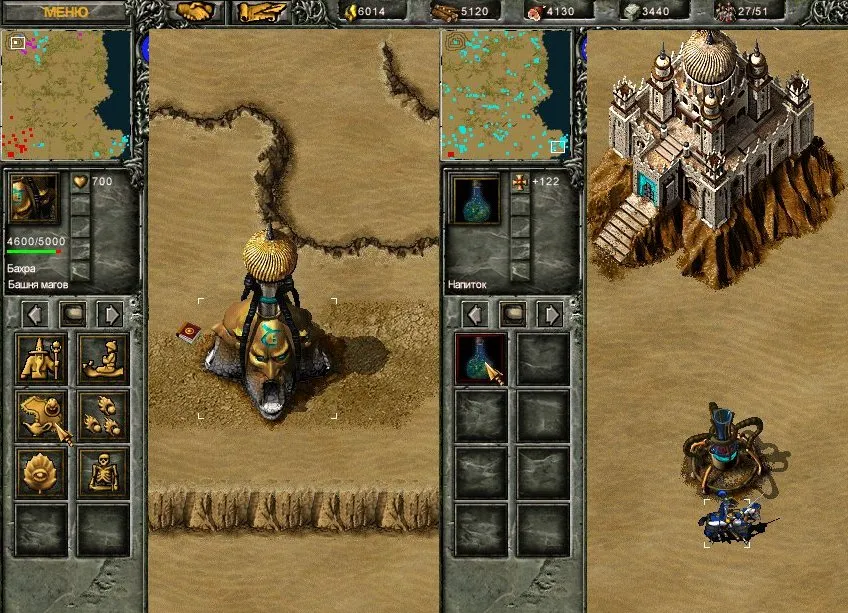 При помощи ковров-самолётов отправьте магический десант в тыл противника, где нет охранных башен. Маги навызывают три десятка големов, и вряд ли что-то устоит перед их атакой. Правда, вместо големов лучше призвать джиннов или драконов – приданные священник смогут их лечить.