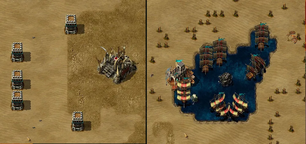В игре «[Эпоха Империй](/games?search=Эпоха Империй)» существовал трюк, позволяющий сделать подступы к базе непреодолимыми для врага; лишь бы на его пути оказалась лужица, способная поместить пристань. После возможных улучшений на пристани строилось единственное судно – размеры водоёма не позволяли поместить больше – джаггернаут с мощнейшей катапультой (зачастую пристань и озерцо скрывались под ним, и в чистом поле стоял здоровенный корабль, наводящий ужас на врагов).