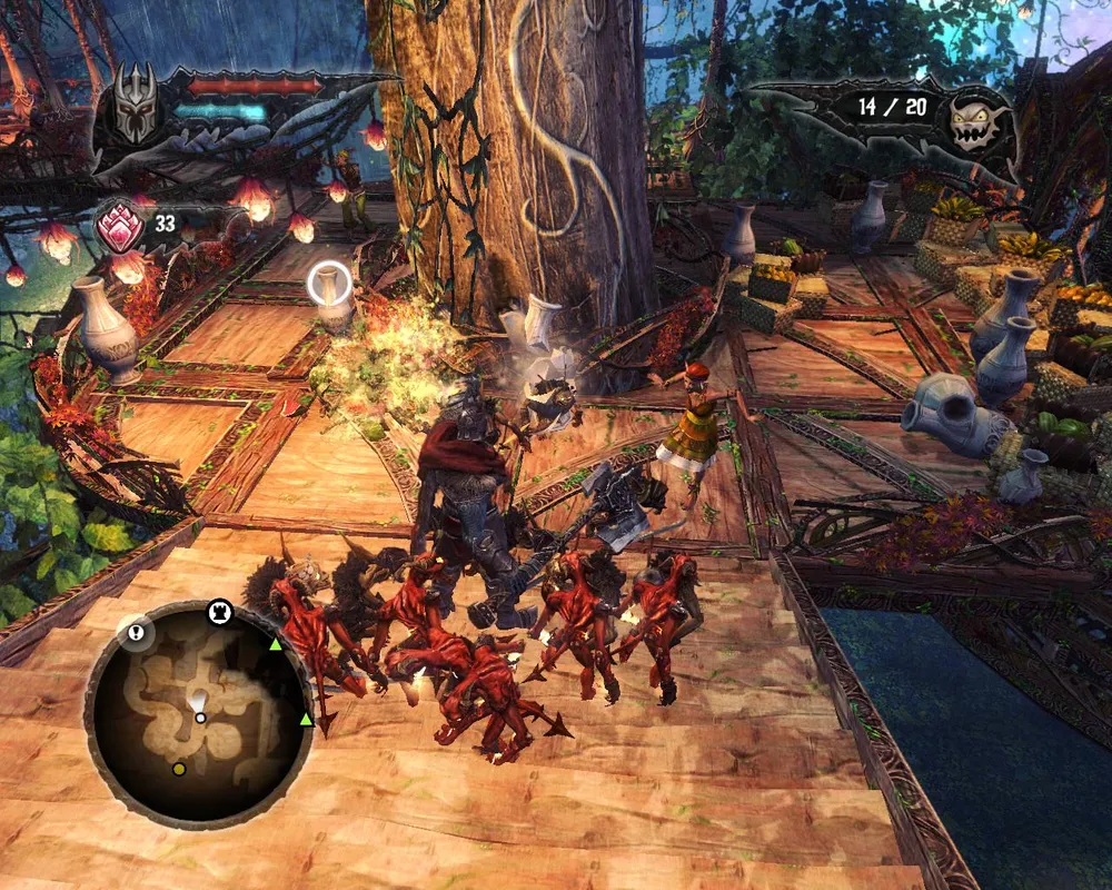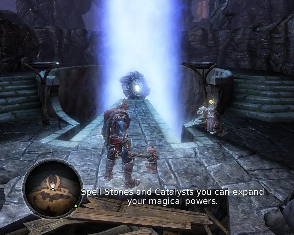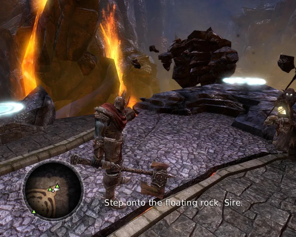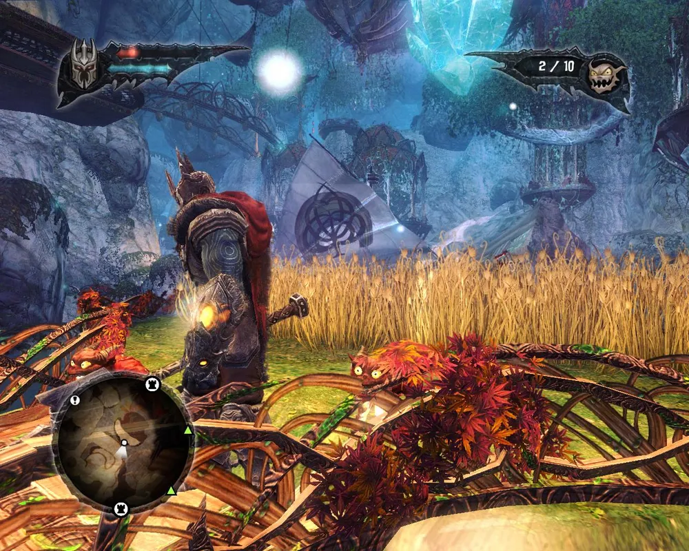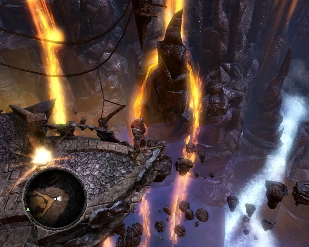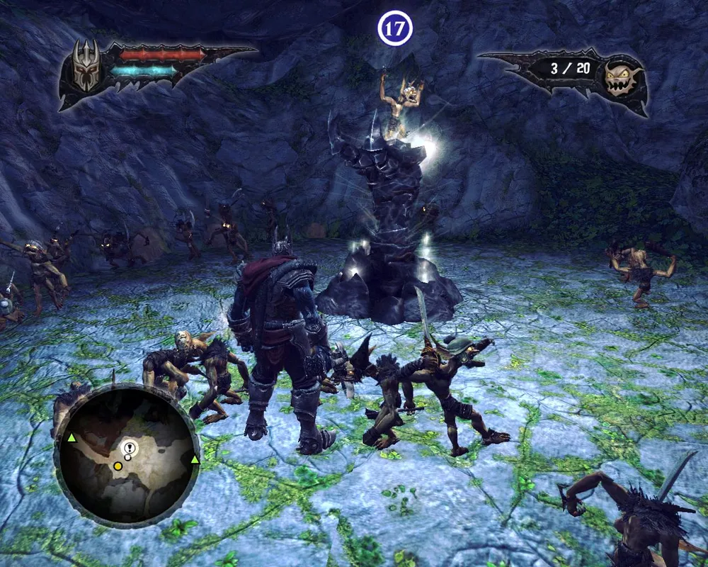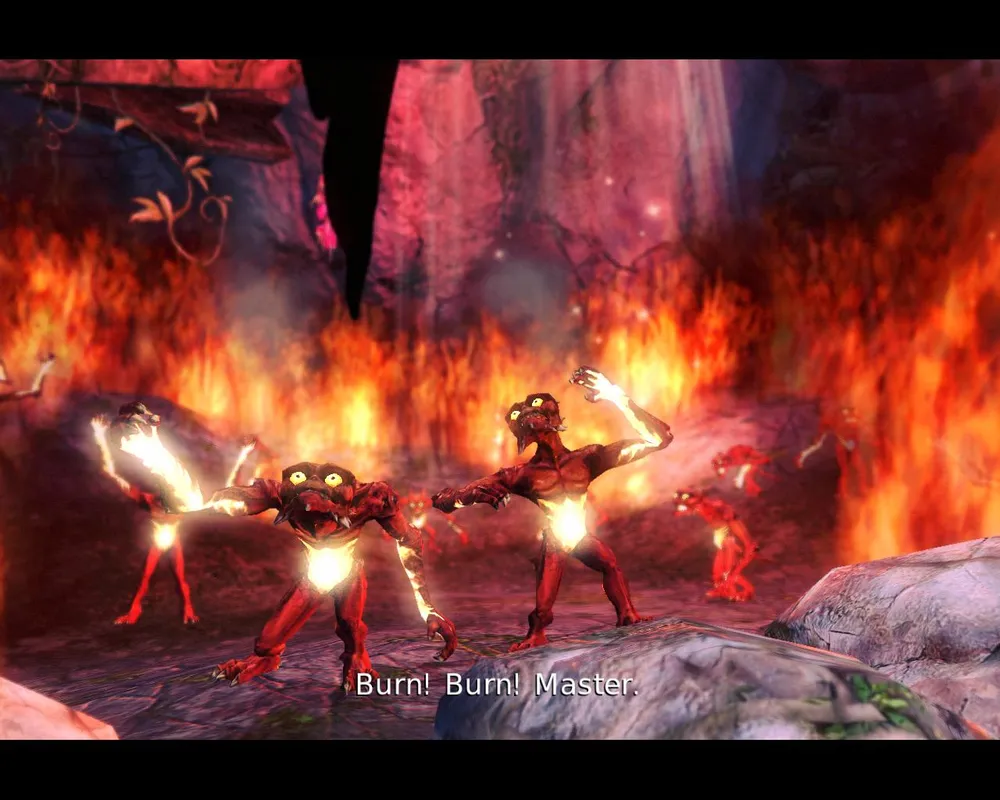 Гоблины, закончив всё крушить стали невинно резвиться в траве, так что прихлопнуть их всех одним ударом больше уже не хотелось. Пришлось заниматься основной, скучной целью визита – вытащить волшебный камень из лап эльфийской статуи. Для этого оказалось необходимым еще один раз вселяться в гоблина, (брррр!) чтобы пробежать в недоступную область и поднять лифт, убить с десяток назойливых эльфов и наконец-то достать тот самый камень.