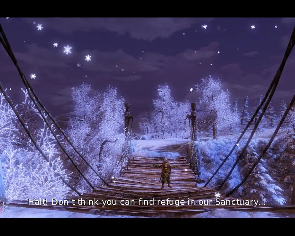 Святилище Эльфов тут же встретило первой загадкой: чтобы добраться до дриады, забаррикадировавшейся за каким-то бревном, пришлось вселиться в одного из мерзких маленьких гоблинов и обойти препятствие по узкому бревну.