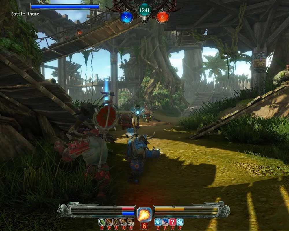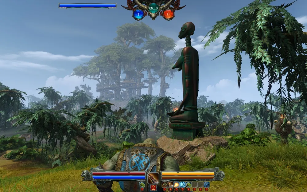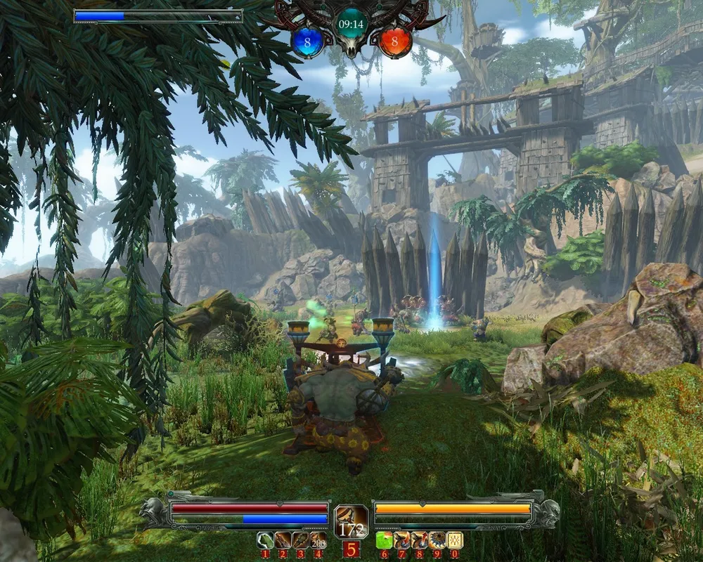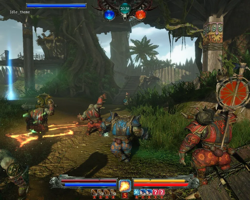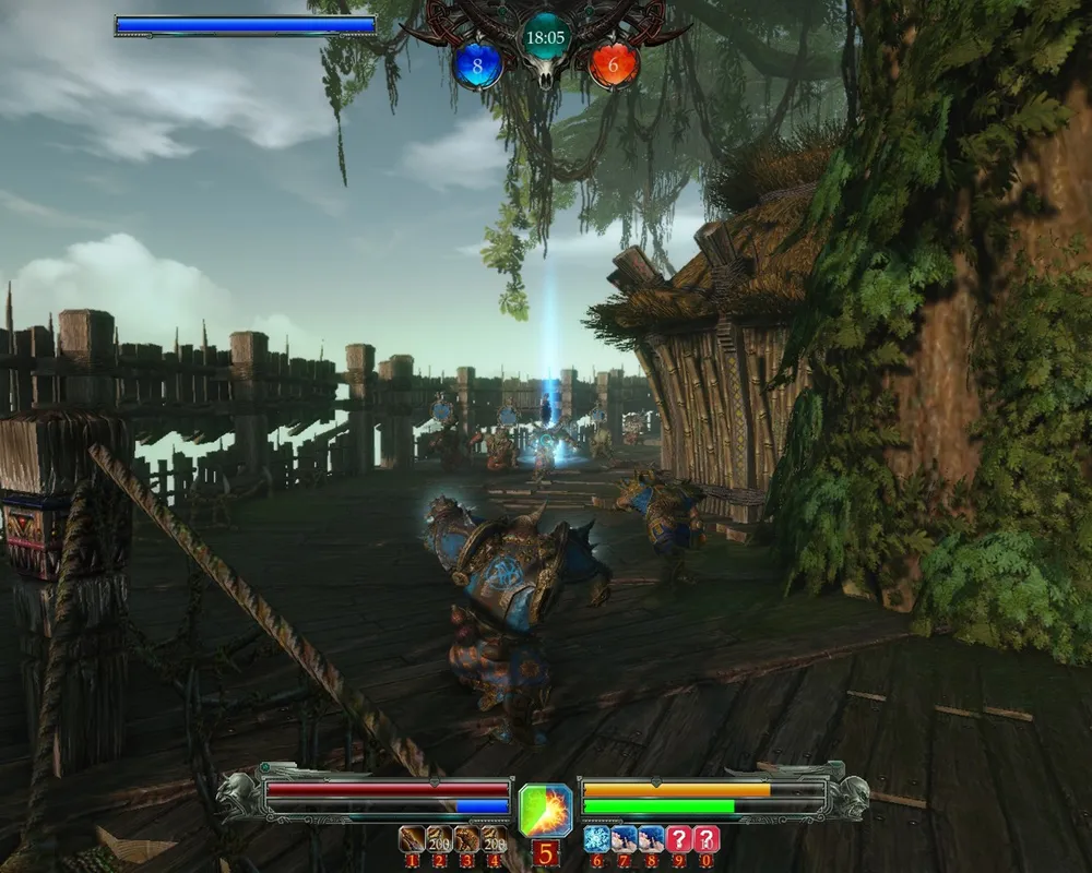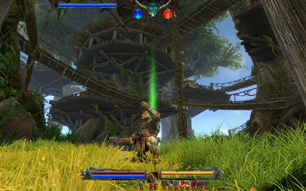 The heart of the location is an Orc Camp, spread in the tops of gigantic trees. Here is the starting point for the team, which recently stolen the sacred object from the shaman. First, they must descend to the lower level of the camp, to the roots of the trees, and it would not be easy and flightless. Camp is surrounded by thick palisade, and the only way out is to capture the point to open the gates. The battle is now outside the fort walls, and the upland is changes by the tropical swamp, with the poisonous and carnivorous plants. The good way to pass this deadly place and reach the control point in the middle of the swamp is to use the flap bridges, which, of cause, will be heavily guarded by the opponents. The last point is located in the highlands, along with the attacker's team's camp. As we already know from the test - it will be the place for the hardest battles - the last chance to stop the messenger. All of the abilities will be used, and sometimes, even Demons figures will rise on the battlefield as the last chance.