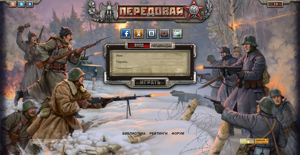 Передовая - бесплатная многопользовательская браузерная игра, основанная на Второй мировой войне. Игроки выбирают фракции Вермахта или РККА, участвуя в боях на гексагональных полях и развивая персонажей. Игра предлагает квесты, мини-игры и систему учебных подразделений для новичков. Возможен обмен игрового золота за реальные деньги.