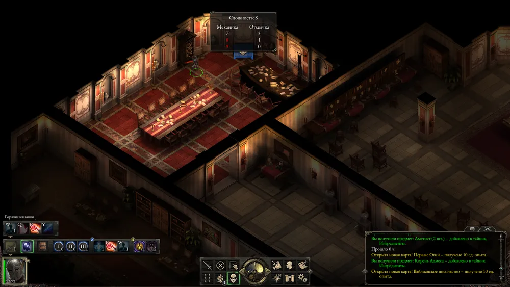 Узнаём о драгоценности, хранящейся в особняке лорда Реймонта (здание справа от особняка Доменелов). Сундук, в котором лежит камень, защищен ловушкой, для обезвреживания которой требуется 8-я механика. Отдохните в "Гусе и лисе", выбрав бонус +1 к механике и экипируйте перчатки манипуляции.