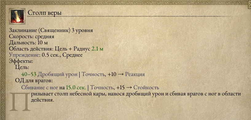На примере боя с ним, рассмотрим заклинание "Столп веры", полученное на 5-м уровне.