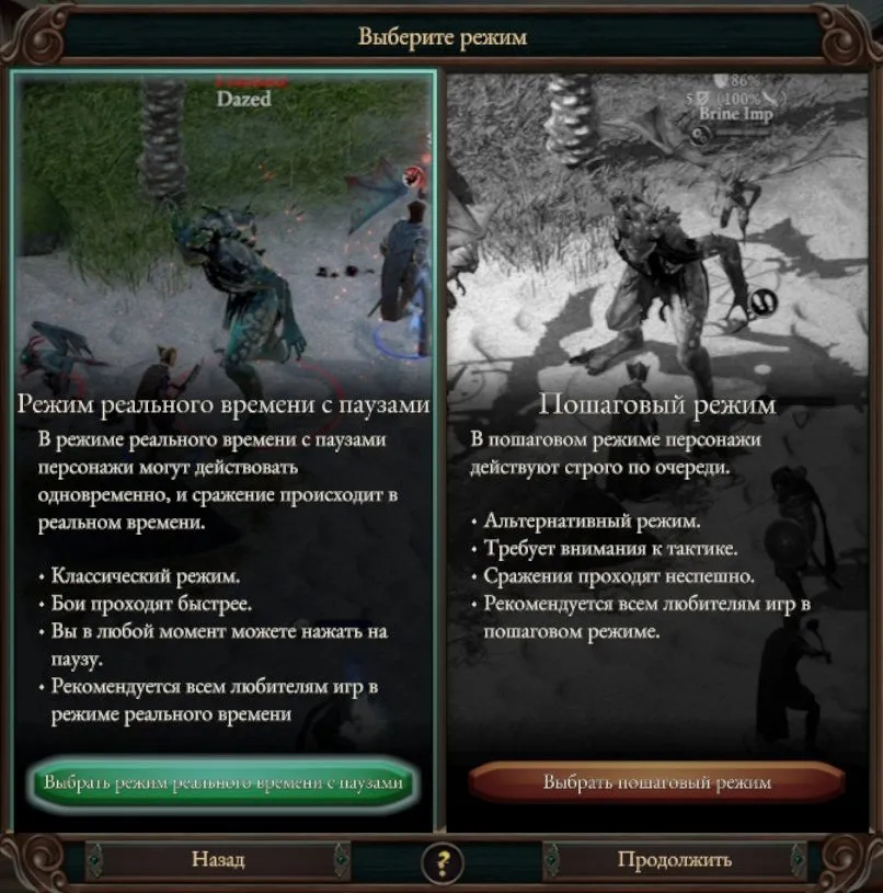 Первым делом нам задают вопрос, в каком режиме играть: реального времени или пошагово?