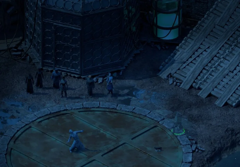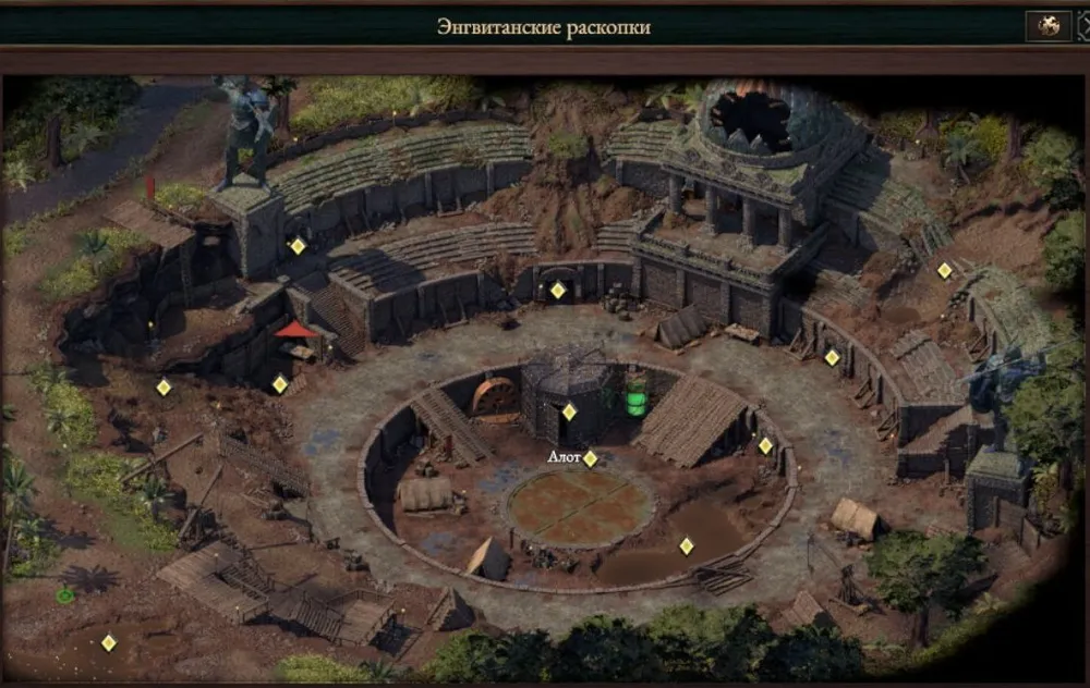 в зоне раскопок находим четвёртого потенциального спутника, также известного по предыдущей части: Алота (если не взять его в команду сразу же, он будет ожидать отряд у дома мэра в Порт-Маже).