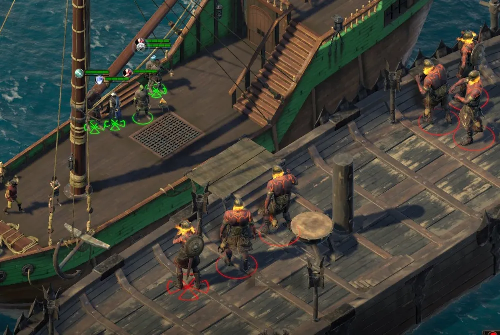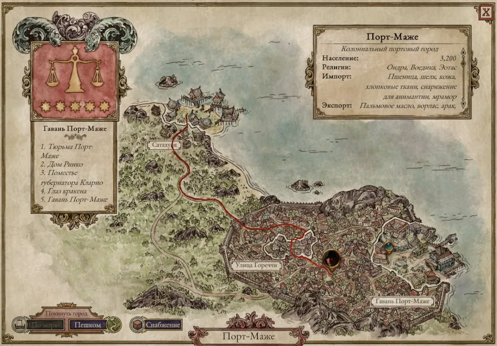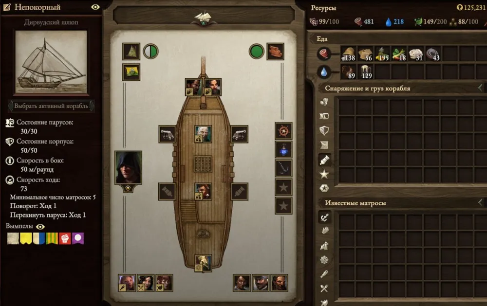 Первым делом плывём вокруг острова, возвращаясь в порт, чтобы нанять в таверне матросов (одного можно освободить из тюрьмы) и докупить материалы, необходимые для ремонта повреждений судна.