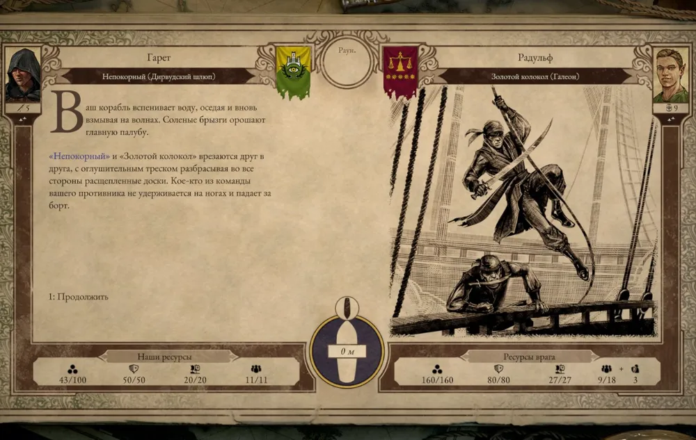 И тут на корабль напали пираты! Пушек всего две из четырёх, зато экипажа больше - делать нечего, на абордаж!