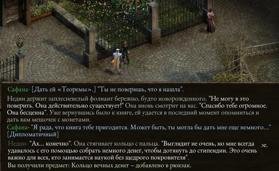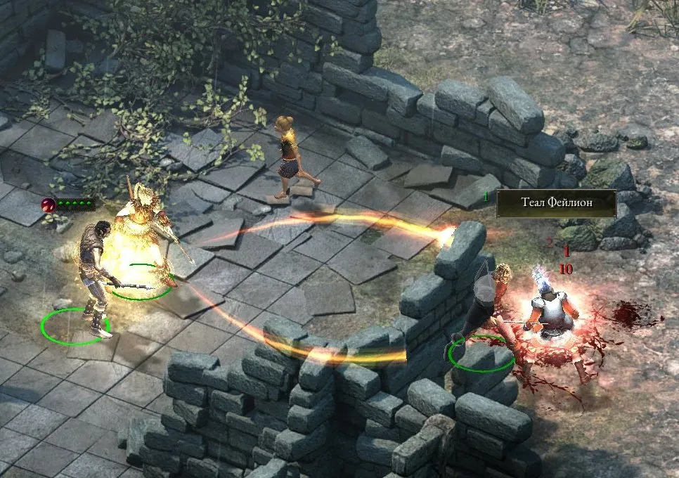 Всё, что трио получает в начале игры, необходимо продать, вплоть до нижнего белья: золота не бывает много, а различное простейшее оружие ещё попадётся. Спешим в Позолоченную Долину, отдыхаем (на второй этаж не заходить!), беседуем с «повешенной», нанимаем двоих спутников: Эдера и Алота. Затем нужно попытаться прикончить Теала Фейлиона, чтобы обеспечить Эдера приличной (хоть и «медленной») бронёй.