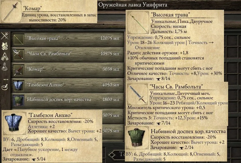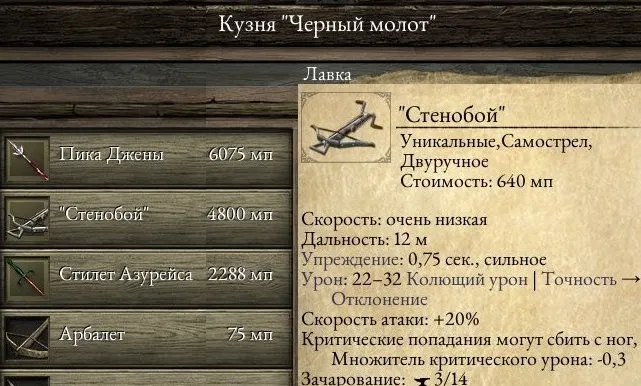 Кузнец Дирфорда приготовил хорошее оружие; оно и стоит соответственно.
