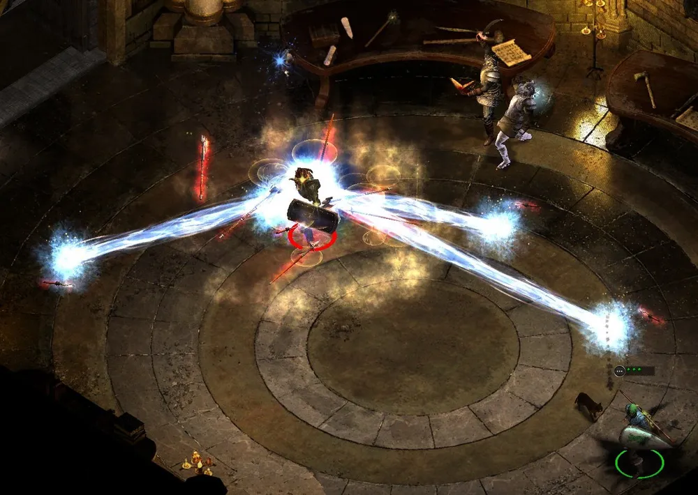 В общем, все действия сводились к поиску золота, необходимого для покупки оружия и восстановления Каэд Нуа, а также к повышению уровней. Посещение храма Воедики открыло сразу две новых локации; первым делом отряд ринулся к Утёсам Крегхольдта. Сложнейшие бои с одиночными стражниками принесли неплохую броню и достаточно золота, чтобы выкупить всё лучшее оружие ближнего боя.