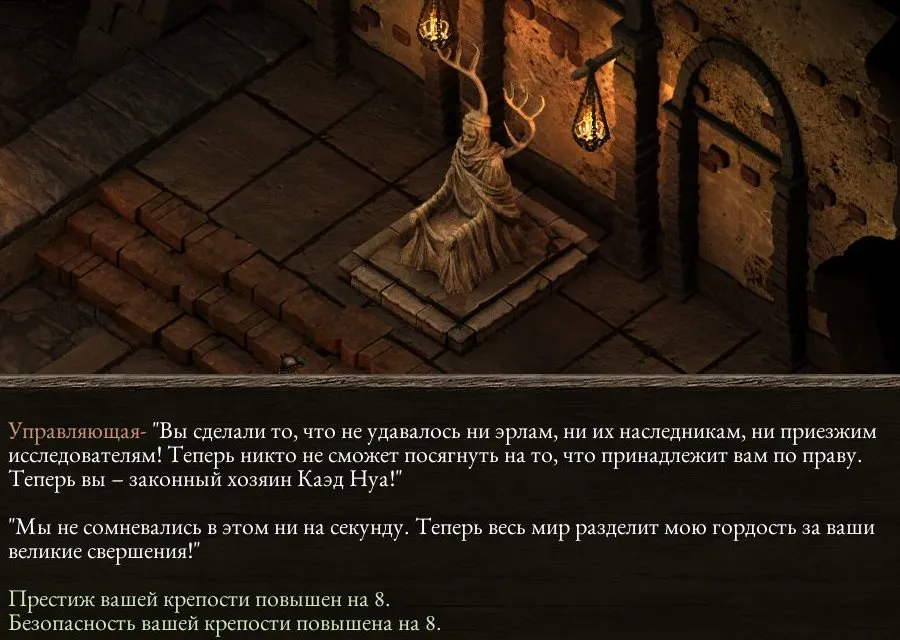 (Что касается заклинания, я не стал его применять: бессмысленно, лучше за это время выпустить ещё одну стрелу.) Вновь победа, управляющая очень обрадовалась сообщению, в ответ на него повысив престиж и безопасность крепости.