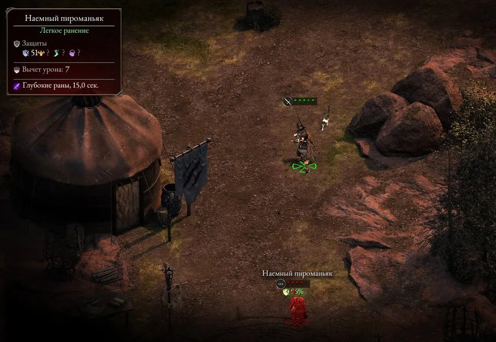 Когда попытался отманивать противников в сторону пещеры, осыпая при этом стрелами, всё-таки удалось «растягивать» толпу и приканчивать врагов по одному. Однако чтобы уничтожить единственного противника, приходилось расходовать все доступные для одного боя способности.