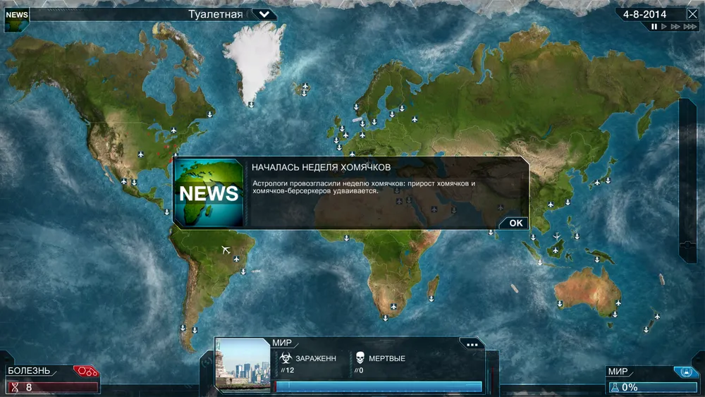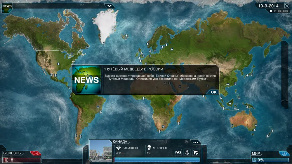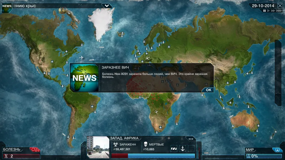 Оригинальная Plague Inc вышла в 2012 году для мобилок на базе Android и iOs, практически моментально став там хитом. На эту игру авторов вдохновила браузерка Pandemic 2, но они не стали делать бездушный клон, а создали свои личные механики игры, не забыв добавить черного юмора. Успех был оглушительный, количество закачек уже перевалило за 12 миллионов штук, и вот настало время собирать новый урожай, на этот раз с PC.