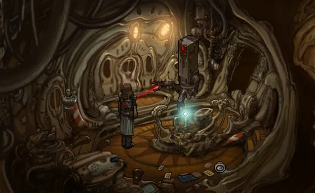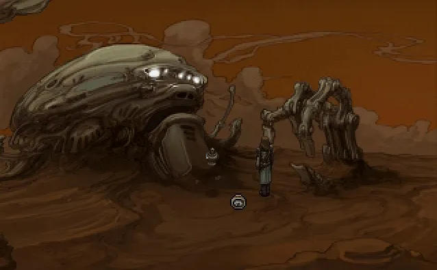Выходим из робота, как вдруг раздается чей-то громкий голос, зовущий чье-то имя... правда, вроде не наше: Хорус Луперкаль. Да, это заговорил оживший робот, который представился как Голиаф. Он посмеялся над иронией того, что из всех роботов только его враг, Горацио, или Хорус, починил его, так как сам Горацио и превратил Голиафа в металлолом. Горацио, или Хорус, или Гор... а, не важно, ничего из этого не помнит, так как его предыдущие версии потеряли память. Голиаф дарит Горацио ШИФРОВАЛЬНЫЙ МОДУЛЬ (DECRYPTION MODULE) и гонит к чертям.