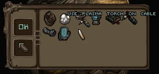 Забираем КАБЕЛЬ (CABLE) и КАБЕЛЕПРОВОД (CONDUIT). Если покопаться в генераторе, мы обнаруживаем, что вместо свечи зажигания там... ШПАТЛЕВКА (PUTTY). Берем ее с собой.