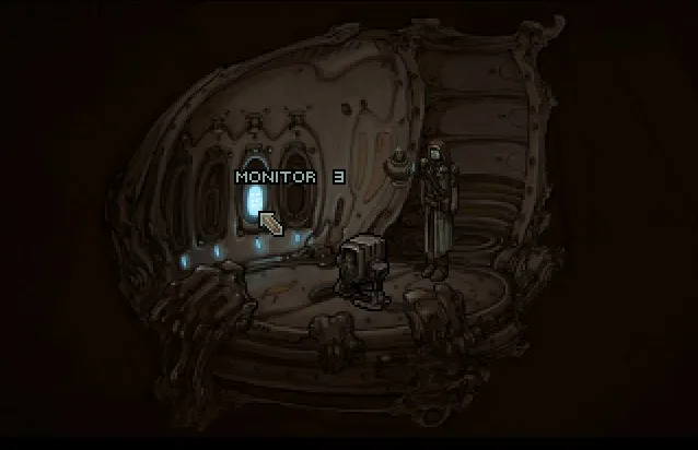 Из всех наборов цифр нам нужны только три: 817 - открывает на карте локацию с огромным гигеровским роботом, которого Криспин живо окрестил каннибалом. 608 это наша же мусорка, но компьютер находит в ней энергию, которую мы еще не обнаружили. Последний номер, 159, открывает нам локацию с неизвестным устройством, излучающим энергию.