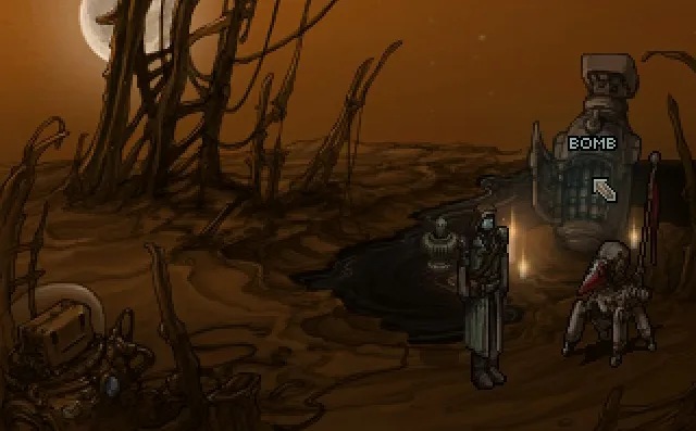 Охраняет бомбу робот по имени - Всегда-Верующий (Ever-Faithful), похожий на диггля из Dungeons of Dredmor. Говорим с ним. Если мы спросим, не видал ли он большого робота, ВВ предложит нам исследовать новую локацию - Купол. (The Dome) Если в разговоре упомянуть, что Горацио - гуманист, ВВ решит проверить его, задав три вопроса. К слову, правильные ответы можно вычитать из Святого Писания.