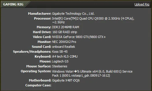 Реализовать добавление конфигурации компьютера в профиль, что позволило бы составлять статистику по железу игроков. Например как сделано в X-fire: