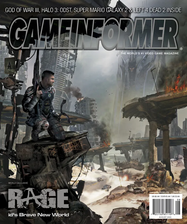На всю длину и ширину обложки августовского номера Game Informer растекся Rage (PC, Xbox 360, PS3) – шутер со столовой ложкой примесей в виде гонок от укротителей программного кода из id Software. Несмотря на то, что игра была анонсирована, дай бог памяти, два с лишним года назад – информации о ней преступно мало. Ну да, id Tech 5 выступает в качестве движка, декором служит постапокалиптический мир, а полигонов в кадре будет помещаться несметное количество - знаем, слышали.