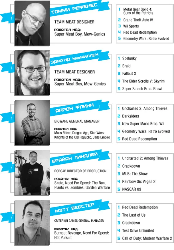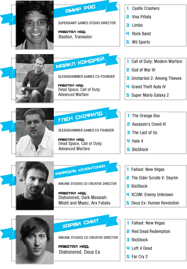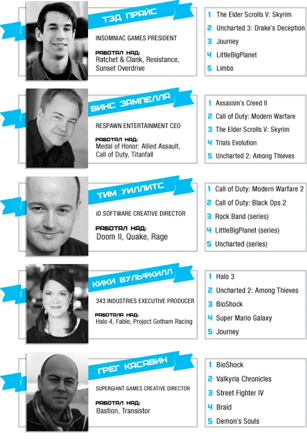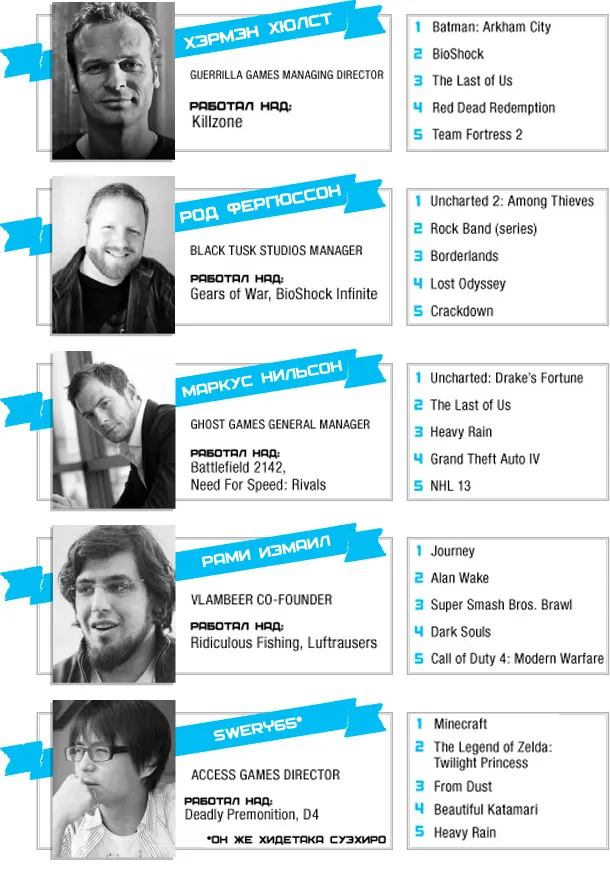 Думаю, переводить на русский все топы не имеет смысла, потому что все и так знают, какие игры и на каких платформах «самые-самые». А вот кое-что интересное я все же у Gameinformerа позаимствовал: представители сайта опросили известных разработчиков и попросили каждого назвать пять своих любимых игр уходящего поколения. Так что этот пост о том, в какие игры советуют играть люди, которые на этом деле собаку съели.