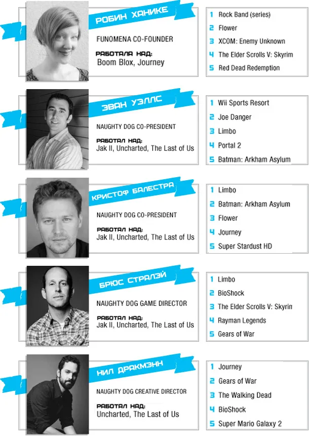 Самой «признанной» студией стала Naughty Dogs, авторы Uncharted и The Last of Us – в общей сумме разработчики получили 18 голосов.