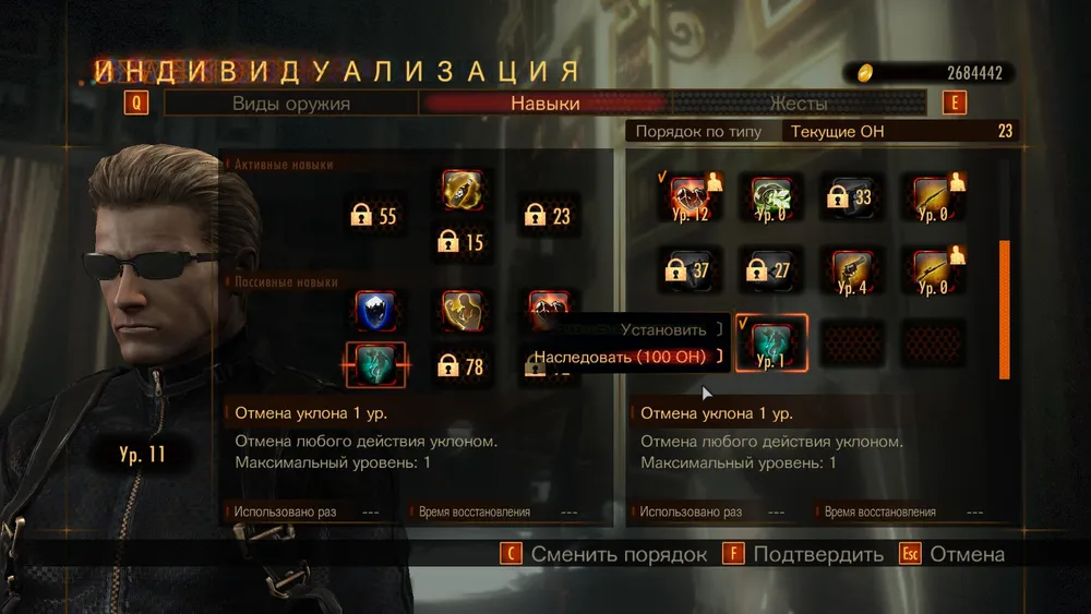 Да, у всех есть уникальные навыки, и некоторые из них просто незаменимы (например, самовосстанавливающийся щит у Клэр), но даже их можно «перебросить» другим героям: достаточно улучшить эту способность до максимального уровня, а затем «наследовать» её, потратив на это дополнительные очки навыков (ОН). Есть смысл наследовать и не уникальные навыки, потому что тем самым вы снимаете с них требование по уровню. Допустим, Барри по умолчанию откроет «мастера штурмовой винтовки» лишь на 27 уровне, но если этот перк уже наследован кем-то другим, ветеран первой Resident Evil сможет изучать его, начиная хоть с первого уровня.