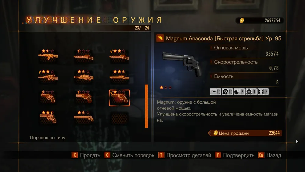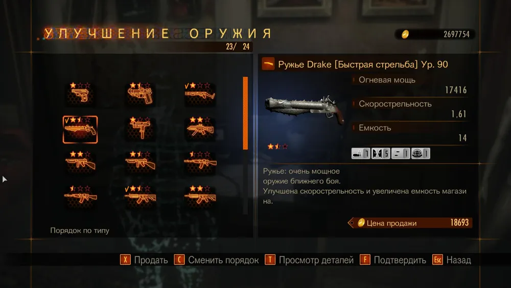 Дробовики — самый быстрый и простой способ уничтожения «пушечного мяса». Обычные живые мертвецы, собаки, охотники, иногда сочиво и «пирамидоголовые» — это клиенты для того, чтобы подойти в упор, засунуть в них ствол и сказать «до свидания!». При выборе дробовика стоит ориентироваться в первую очередь на емкость магазина: если она от 8 и выше, можно установить модуль «очередь+ 1», что позволит выпускать два заряда сразу, с удвоенной огневой мощью. Так выглядит мой дробовик, с которым были покорены все миссии «красной» сложности.