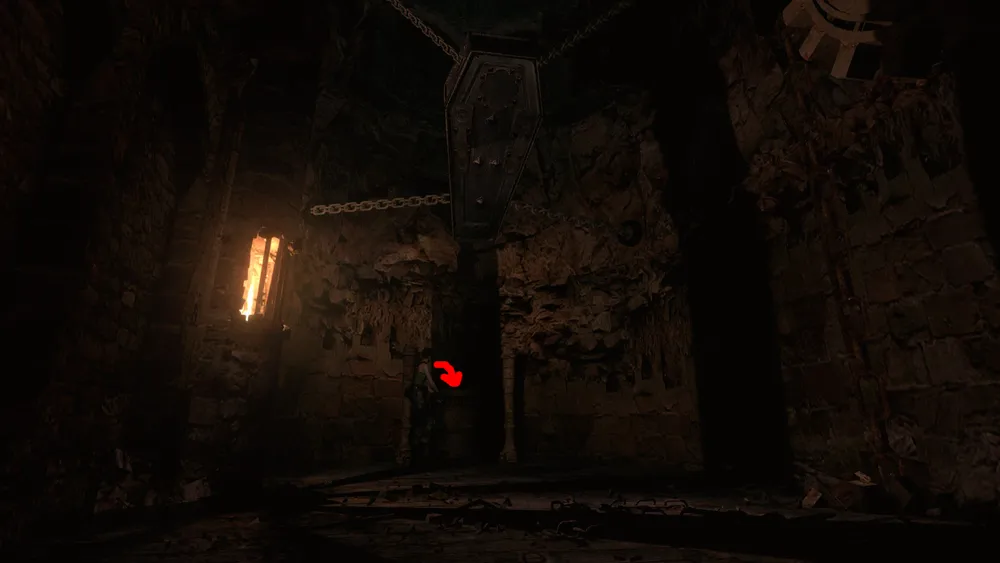 Если вы все вешаете верно, то после каждой маски у гроба под потолком будет рваться цепь. Когда соберете все четыре, он упадет и оттуда вылезет красный и крайне опасный драугр. Когда победите его, подойдите к гробу. Во-первых, откройте там кнопкой дверь наружу, во-вторых, возьмите восьмиугольный символ Амбреллы.
