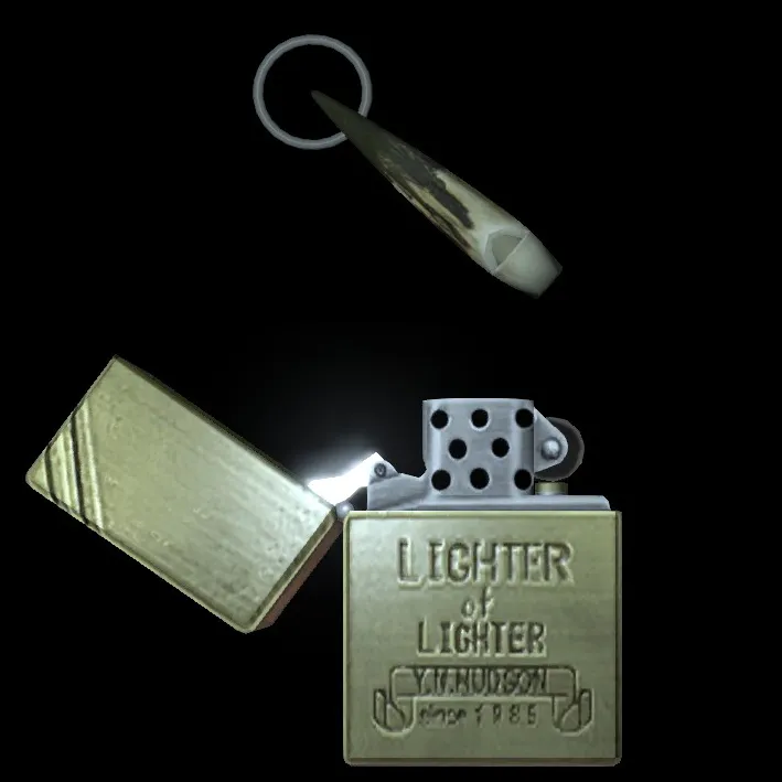 Далее заходите в единственную доступную вам дверь в конце П-образного коридора. В этом помещении будут четыре предмета, которые можно взять (сейчас, или потом, когда разгрузитесь). Во-первых, прямо у двери, откуда вы вошли, на тумбочке будет лежать собачий свисток. Берем его и получаем записку с историей о нем. Во-вторых, подходим к столу хозяина кабинета и берем с него зажигалку. Там же можно найти еще один журнал.