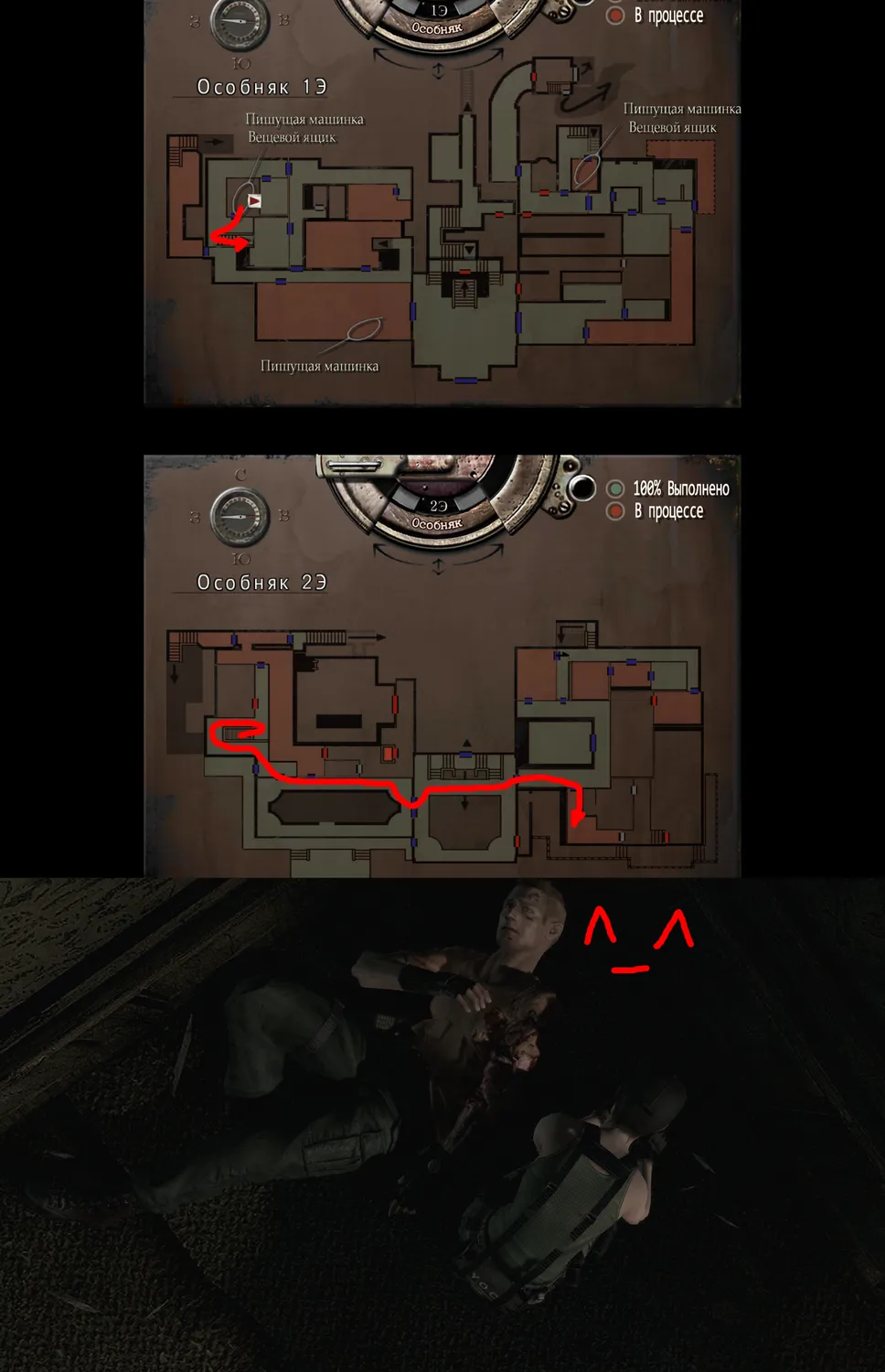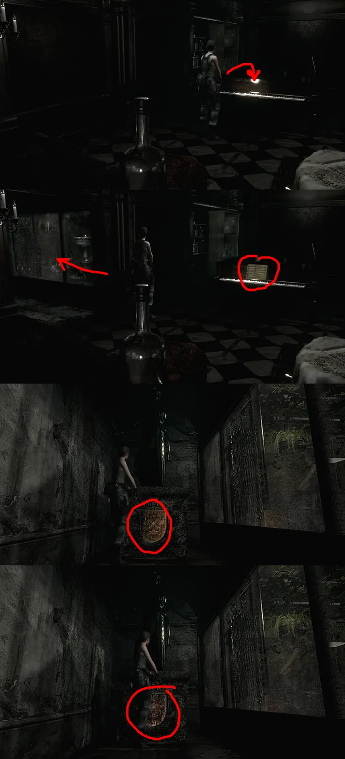 Это вам не квест! Большинство предметов можно взять совсем не в том порядке, в котором советую я. Более того, очень многие ключевые предметы будут отличаться у Криса и Джилл. Так что пользуйтесь этим руководством только если зайдете в тупик.