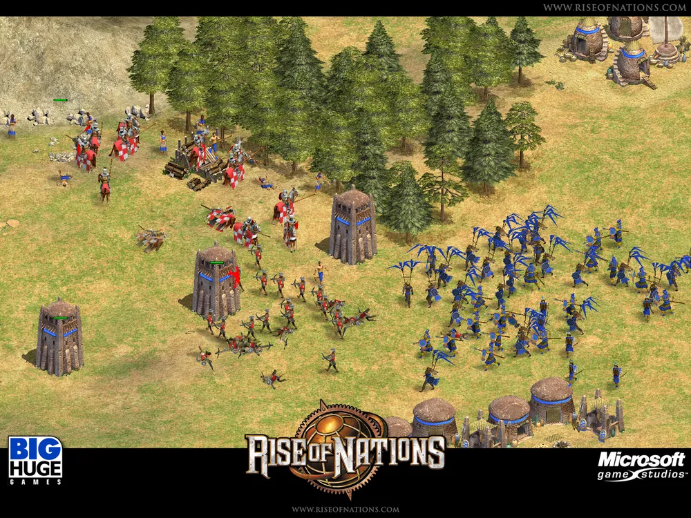 Rise of Nations — стратегическая игра в реальном времени от Big Huge Games, выпущенная в 2003 году. Игроки управляют нациями, строят города, собирают ресурсы и исследуют технологии, чтобы развивать свою армию и захватывать территории. Игра включает элементы глобальной стратегии, такие как национальные границы и чудеса света, а также множество режимов игры, включая кампанию и сетевые сражения.